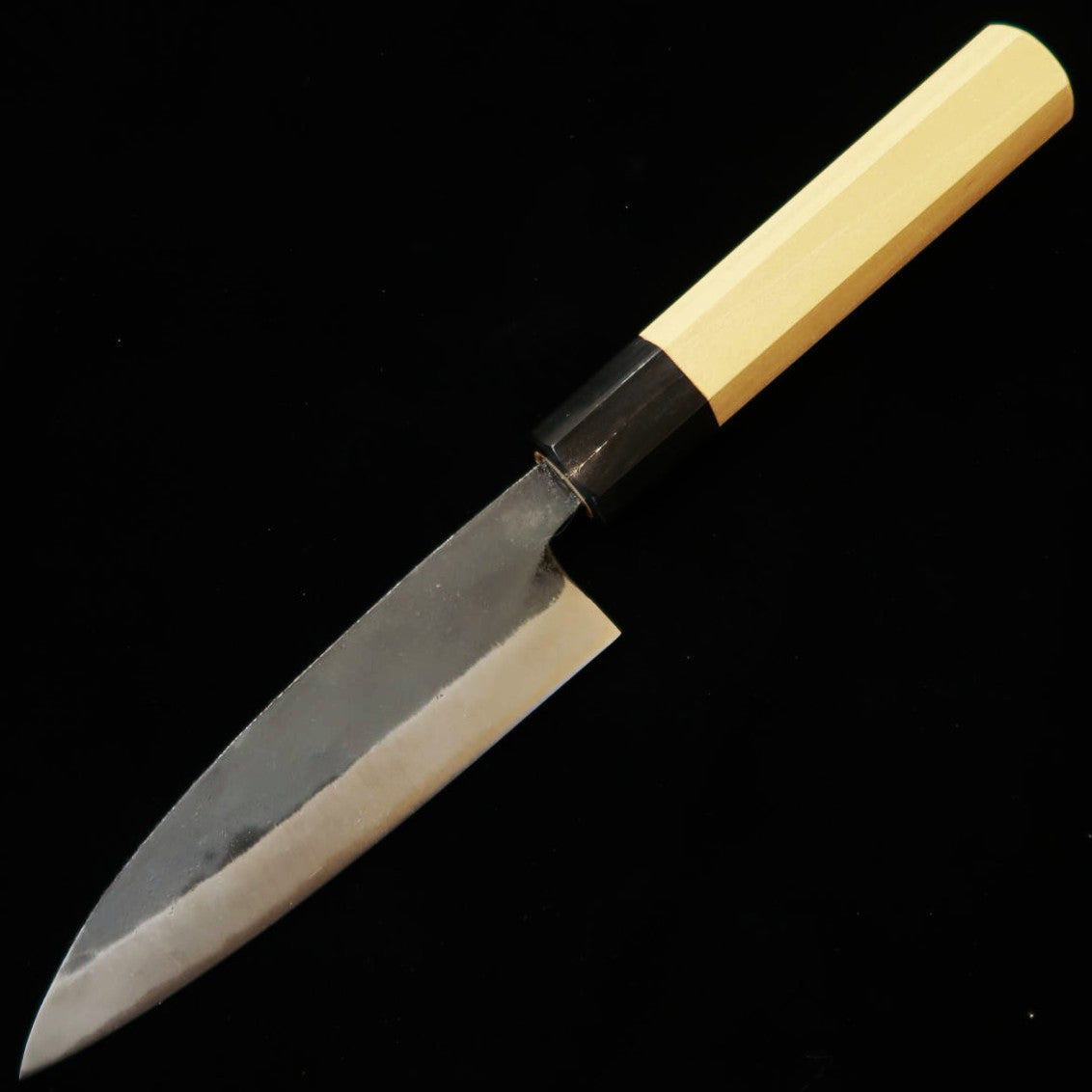 MIURA Double-Bevel Sabaki, White Steel No. 2 Kurouchi with Magnolia Octagonal Handle (145mm)