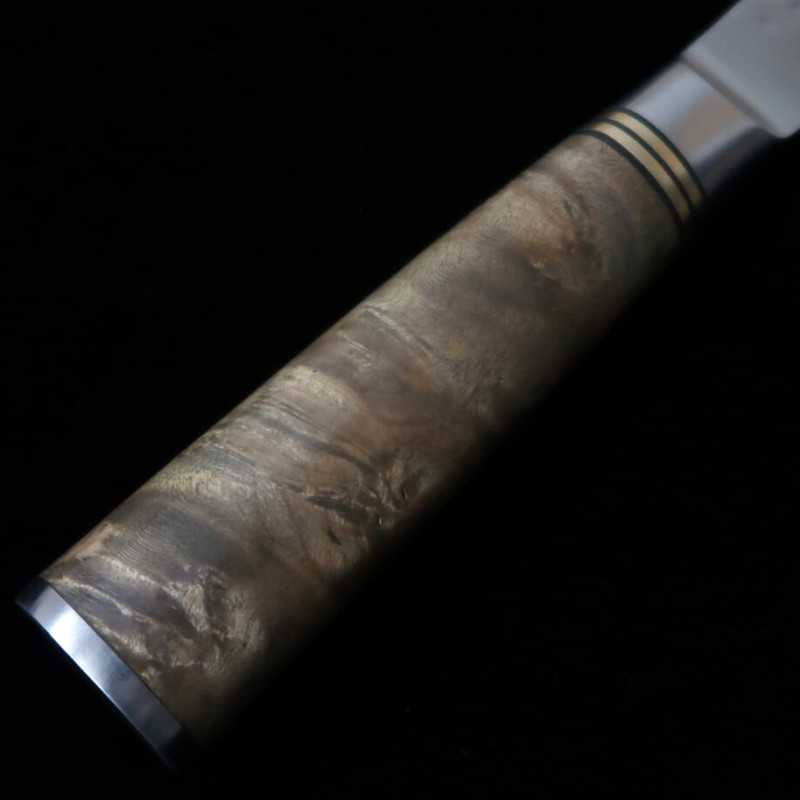 He creates a unique worldview by manipulating highly functional materials such as ironwood and micarta. His knives made from colored Damascus are especially famous and popular due to their beautiful appearance.