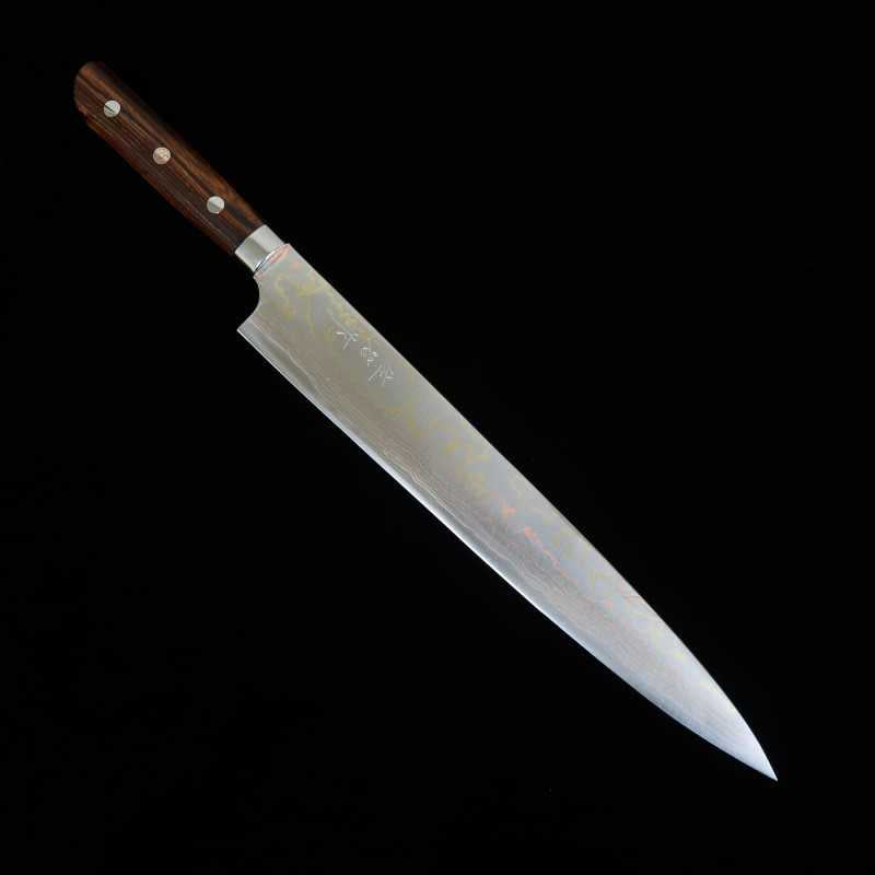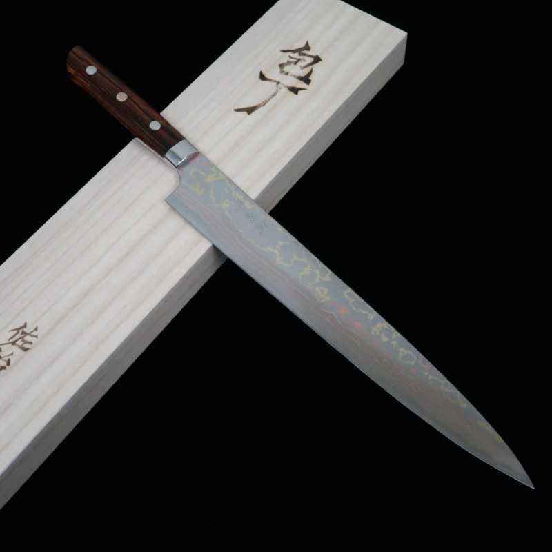 Takeshi Saji Sujihiki Aogami No. 2 Colored Damascus Ironwood handle (270mm)