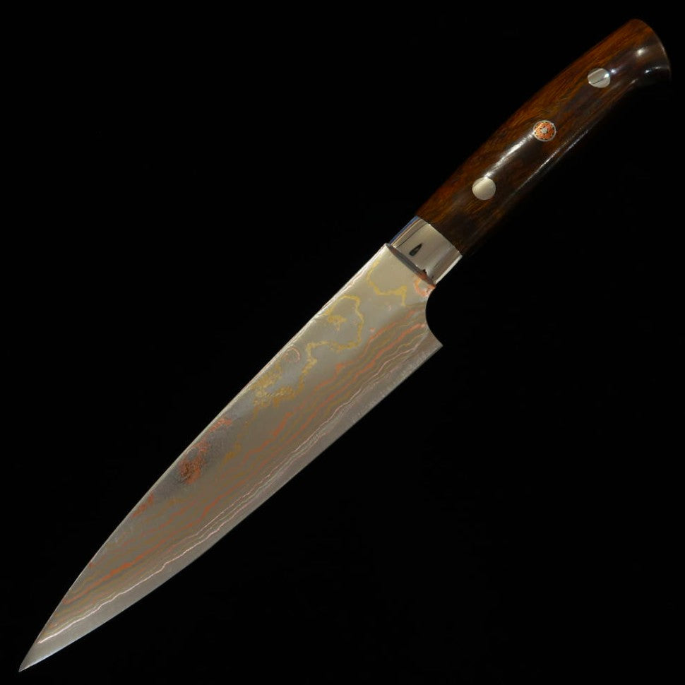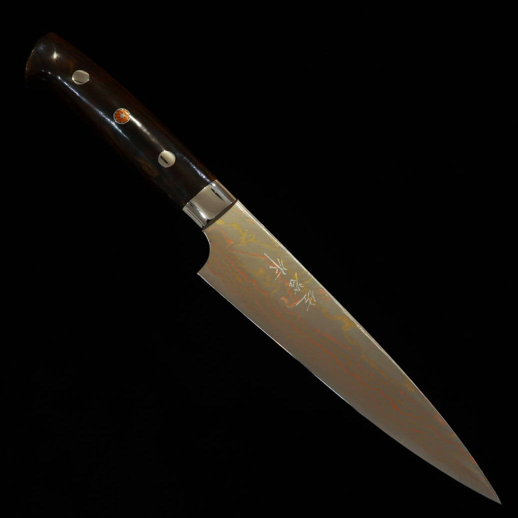 Takeshi Saji Aogami No. 2 Rainbow Damascus Petty Ironwood Handle (135/150mm)