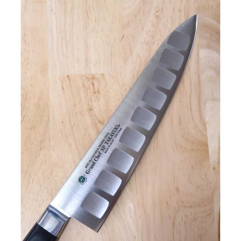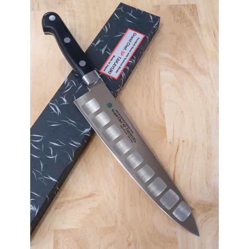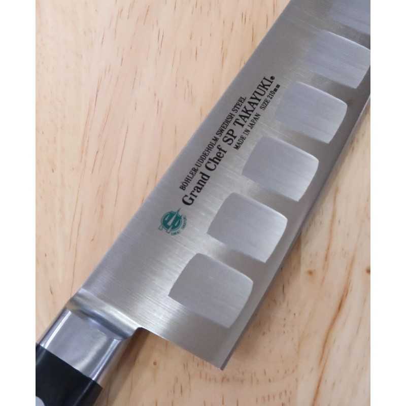 This is a dimpled chef's knife from the Sakai Takayuki Grand Chef series.