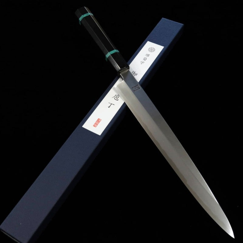 SAKAI KIKUNOMORI Yanagiba Satoshi Nakagawa Ren Aogami No. 1 Turquoise handle (270/300mm)