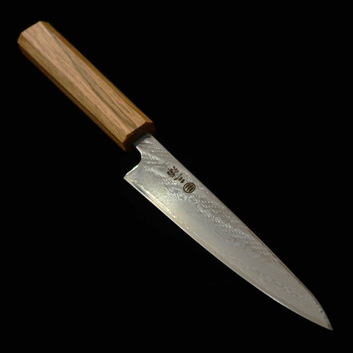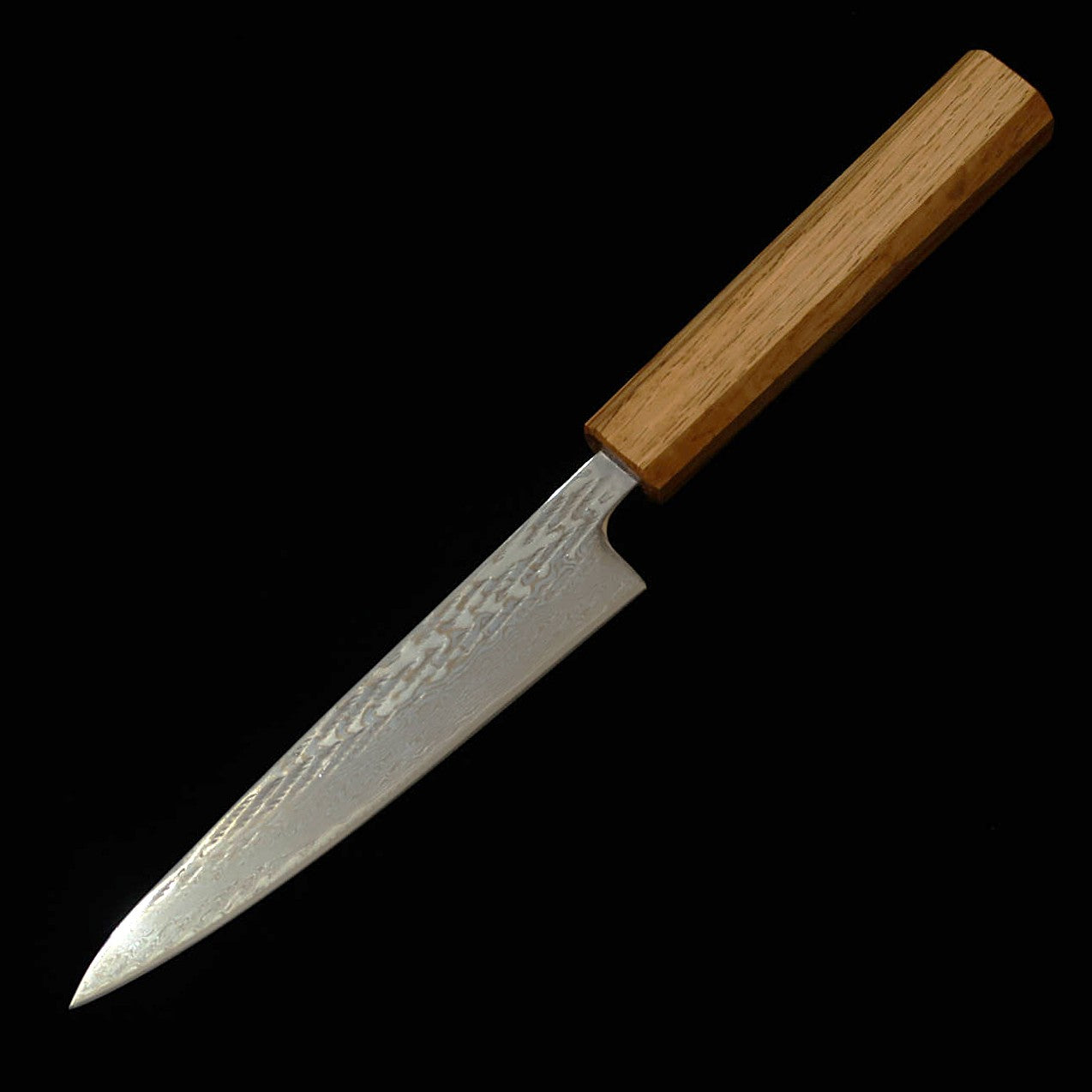 三浦MIURA ペティ AUS10(10A)縄目 ダマスカス 透明 樫八角柄(135mm)
