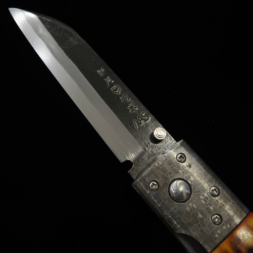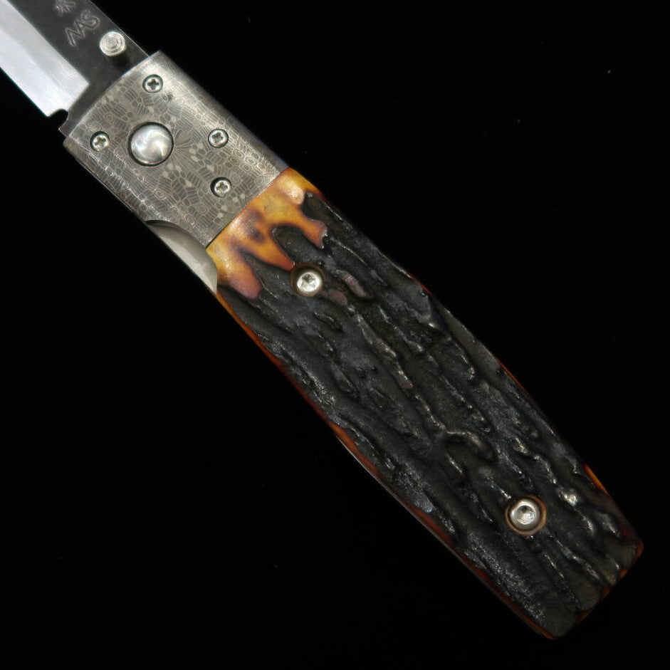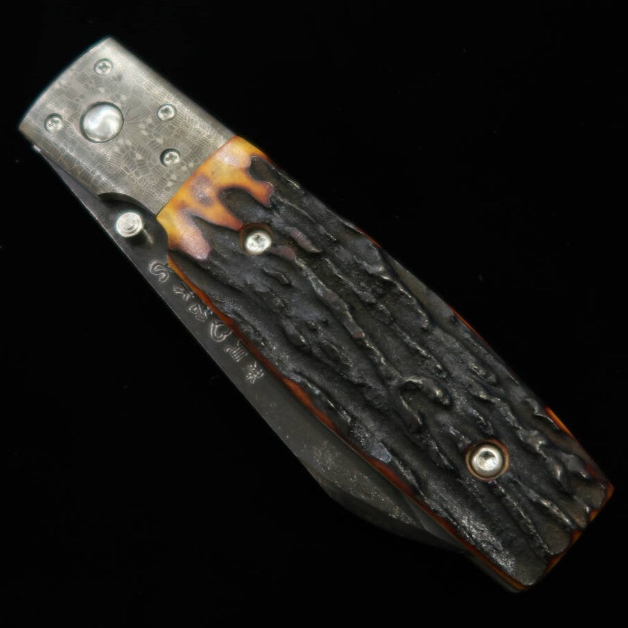 Takeda Hamono TAKEDA, herrero artesanal de Bitchū, obra de Inagaki, navaja liner lock tipo B, asta de ciervo de la India teñida, bolster especial, acero Hitachi Aogami Super.