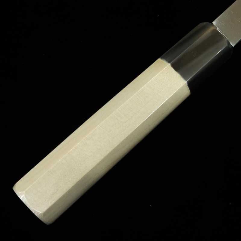 Una pieza excepcional forjada por el artesano Kenji Togashi de Sakai, utilizando el mejor acero blanco No.1 (Shirogami 1), considerado la cima de los aceros para cuchillería.