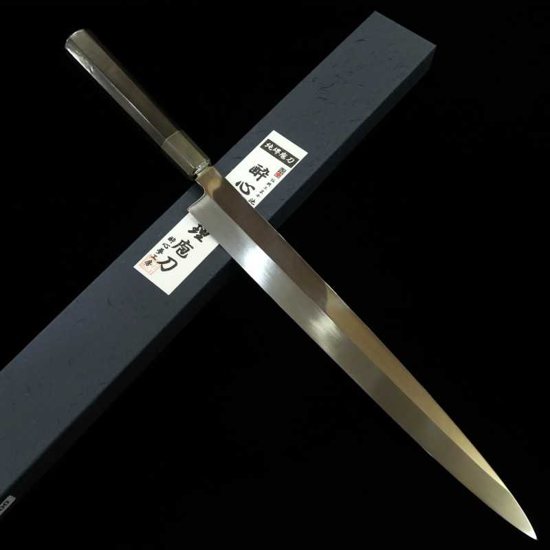 Yanagiba SUISIN Ikeda Miwa Aogami nº2 Mizuhonyaki Espejo plano Mango octogonal de ébano (330mm)