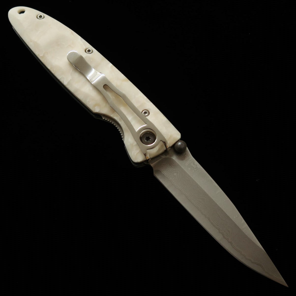 ・Acier extérieur de la lame : acier inoxydable (damassé)