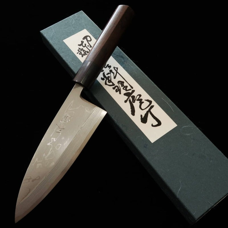 Miura MIURA, Deba pour gaucher, acier Shirogami n°2, damas, manche en palissandre violet (150 mm)