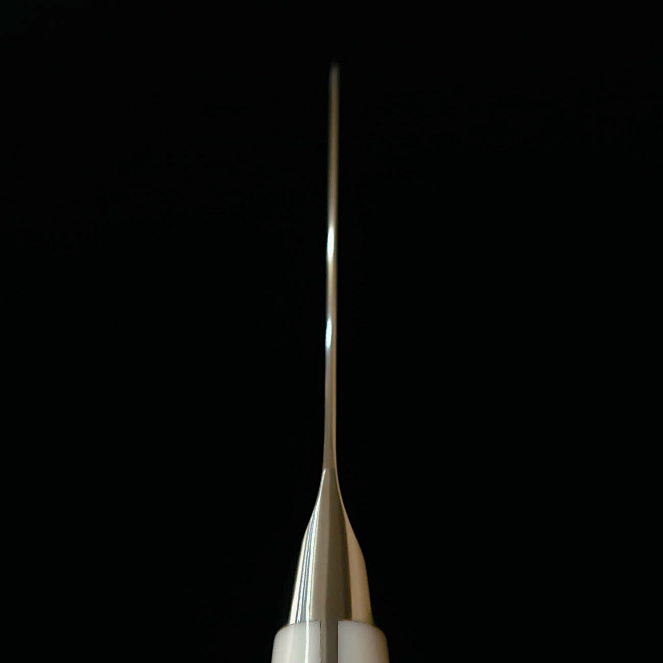 Le manche, équipé d'une mitre et d'un culot, est classique et luxueux, tout en offrant une prise en main stable et agréable. Le culot, dont les arêtes ont été soigneusement chanfreinées, présente une finition poli miroir et arbore le logo Zanmai.