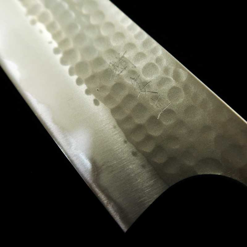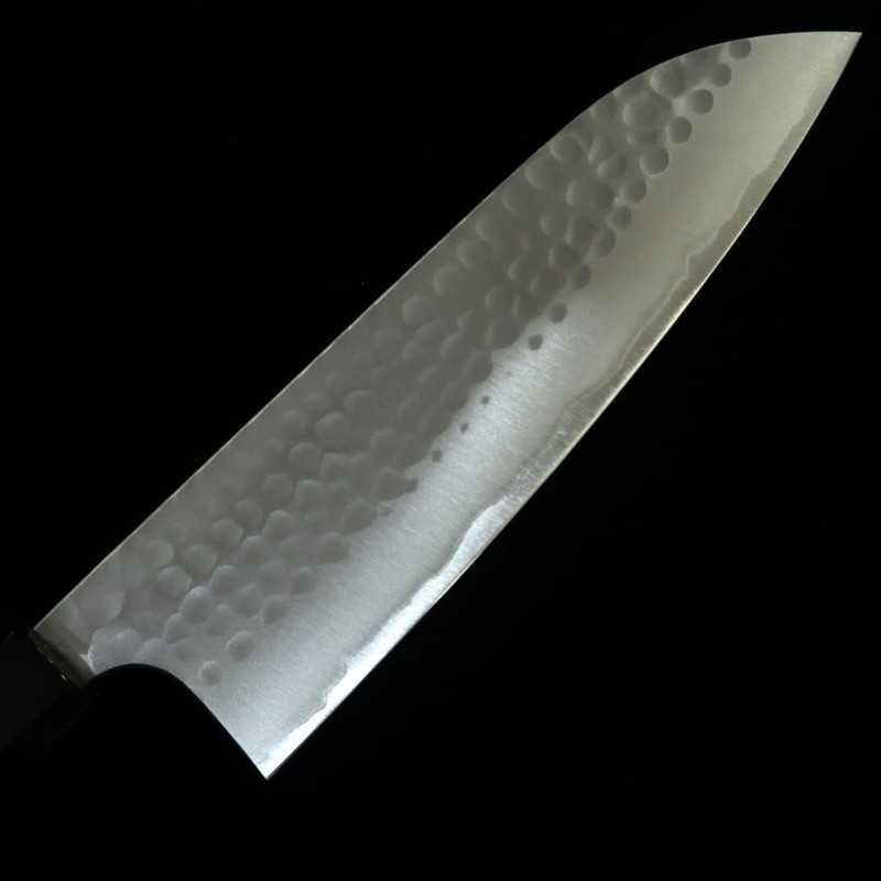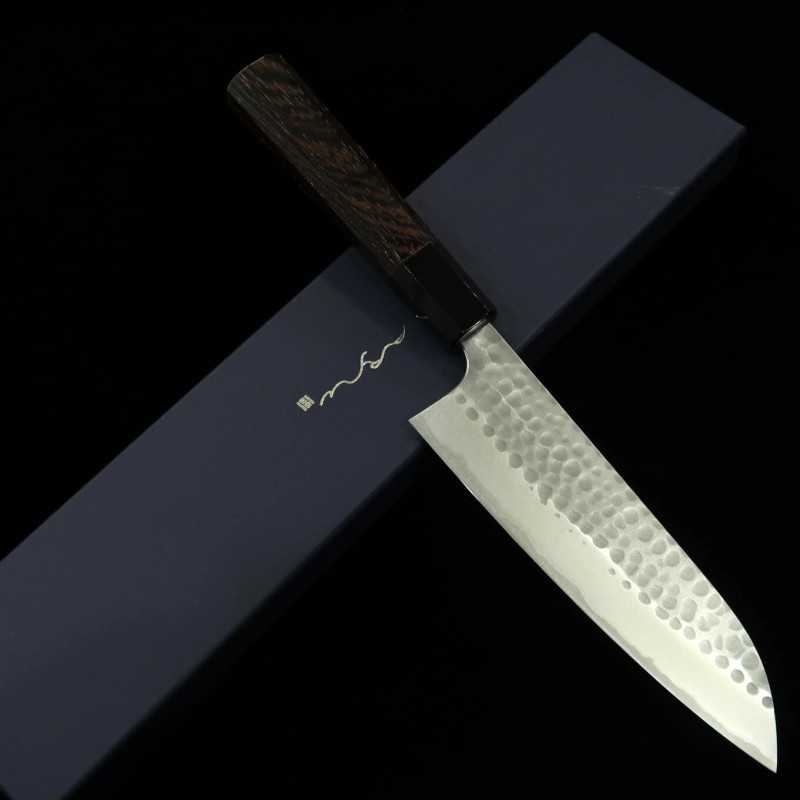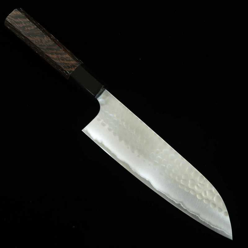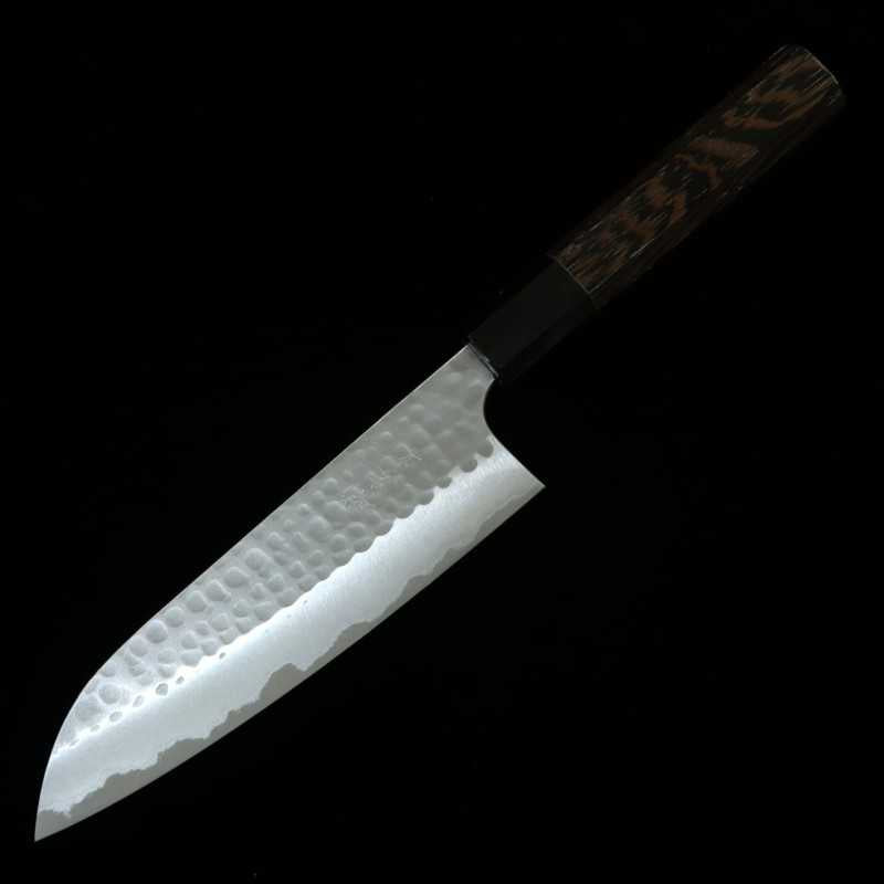 ANRYU Santoku, acier bleu n°2, poli, martelé, manche octogonal en wengé (170mm)