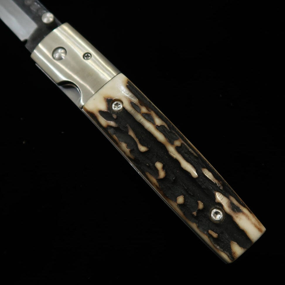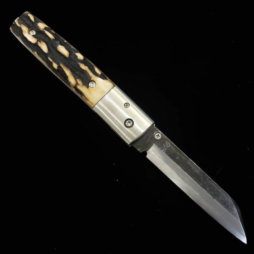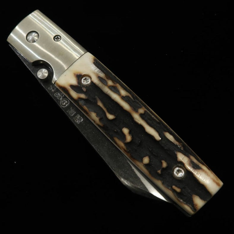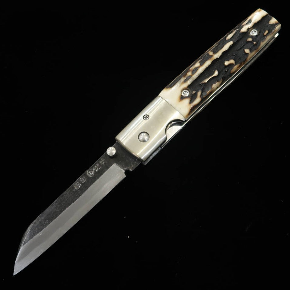 Takeda Hamono TAKEDA Bitchū forge à la main par Inagaki, couteau pliant liner lock A, bois de cerf Ezoshika, acier Hitachi Aogami Super (85 mm)