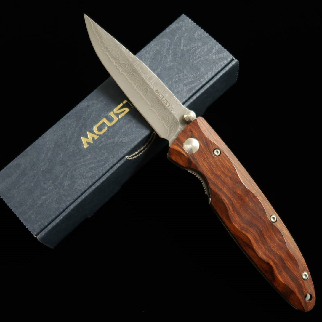 エムカスタMCUSTA クラシックウェイヴ ダマスカス アイアンウッド フォールディングナイフ MC-0018D (85mm)