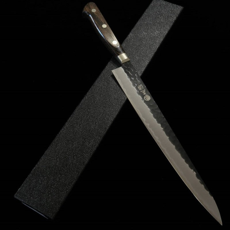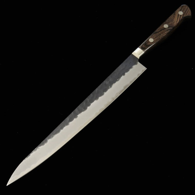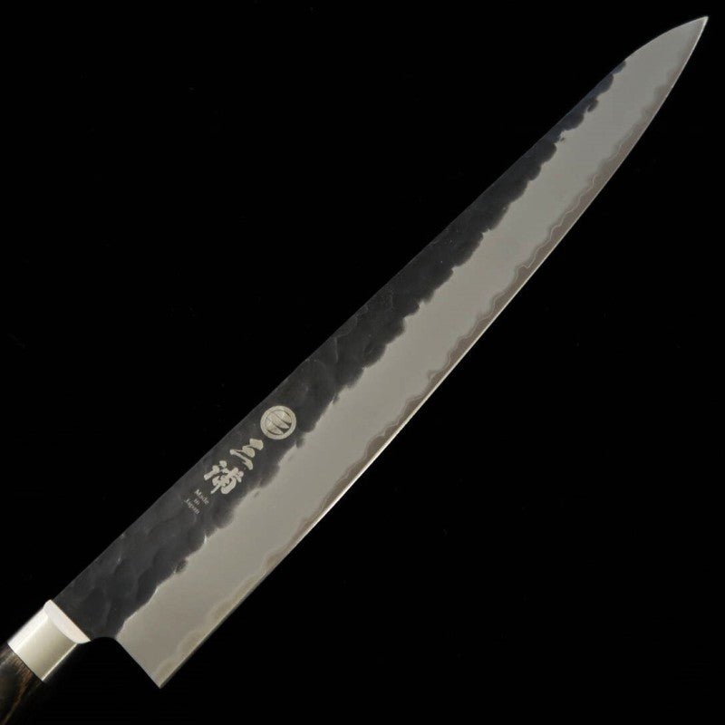三浦 MIURA 筋引 青紙スーパー 鎚目 黒打ち 焦茶柄 (240mm)
