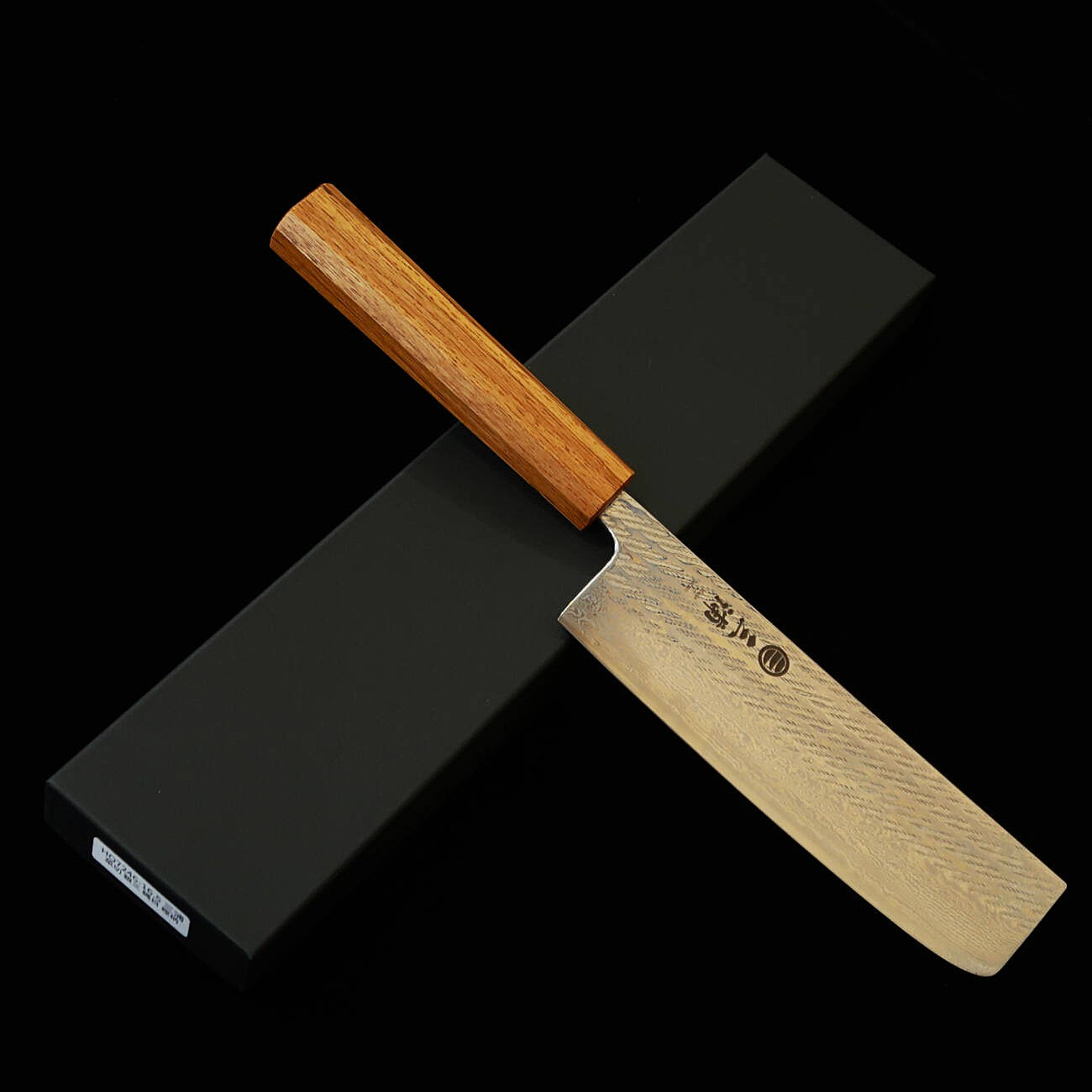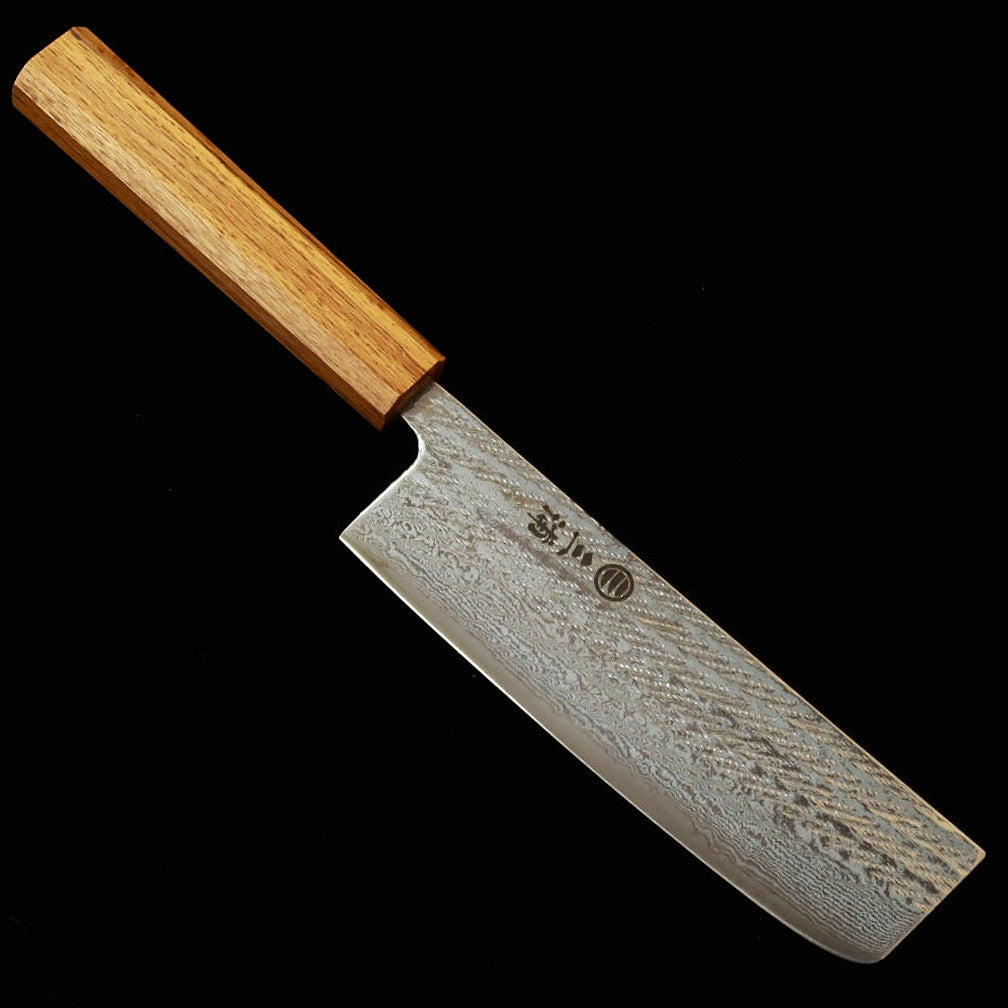 三浦MIURA 菜切 銀紙三号 縄目 ダマスカス 透明 樫八角柄(165mm)