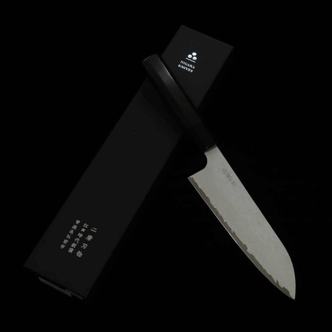 二唐刃物鍛造所NIGARA VG XEOS 槌目ダマスカス 三徳 黒檀柄 (185mm)