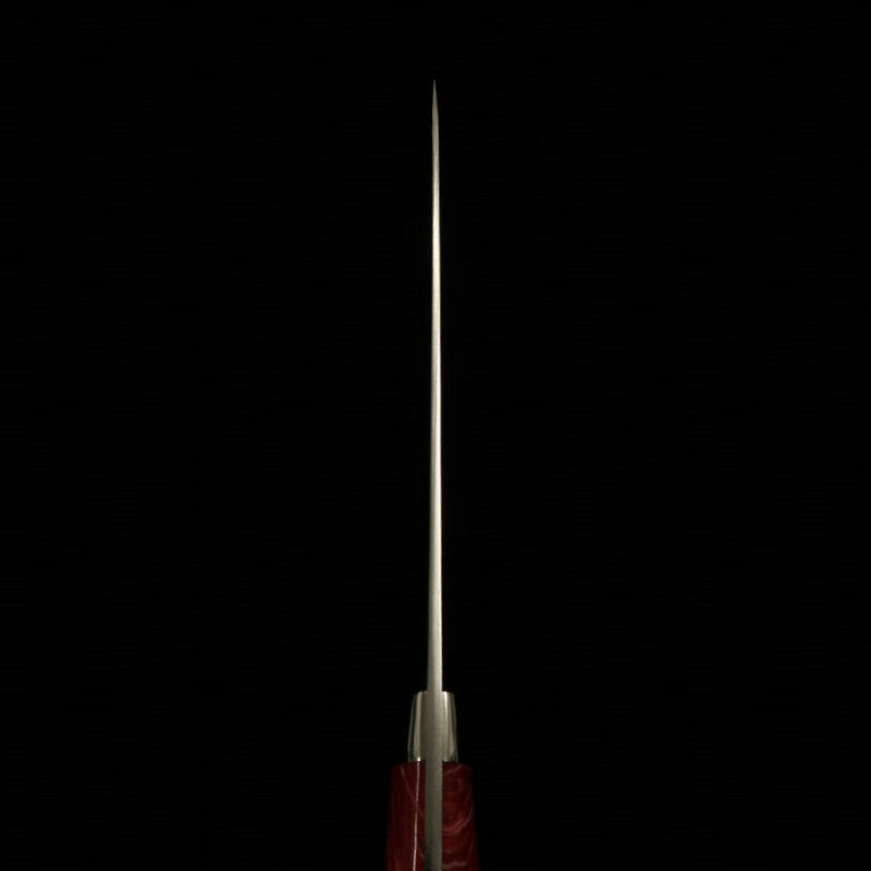 佐治武士氏の経歴からなるナイフのテイストが漂うグラマラスなハンドルは、しっかりとした重量を持つこのナイフを確実にグリップし、意のままに操る事が可能です。