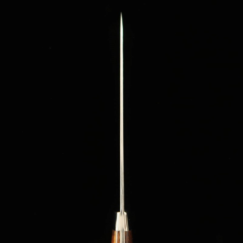 佐治武士氏の経歴からなるナイフのテイストが漂うグラマラスなハンドルは、しっかりとした重量を持つこのナイフを確実にグリップし、意のままに操る事が可能です。