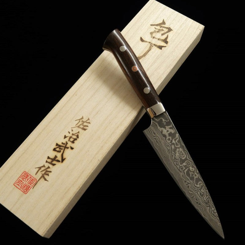 佐治武士 SAJI TAKESHI R2 黒染めダマスカス ペティ アイアンウッド (135/150mm)