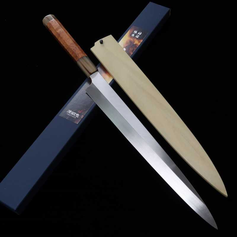 水野鍛練所 MIZUNO 源昭忠 青二鋼本焼DX 柳刃包丁 花梨柄 朴鞘付き (300mm)