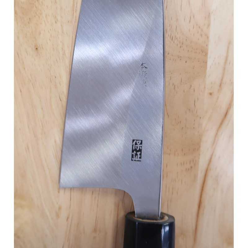 砥ぎやすくよく切れる白紙鋼に対し、永く切れ続け欠けにくい高級鋼である青二鋼を刃金に使用した出刃包丁です。