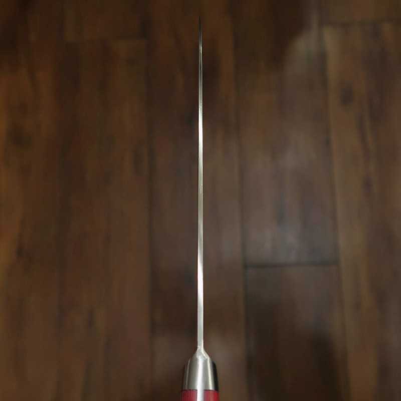 固く、鋭く、砥ぎやすい高次元でバランスの取れたブレイドがオーソドックスながら迫力あるフォルムのプロフェッショナル向け包丁です。