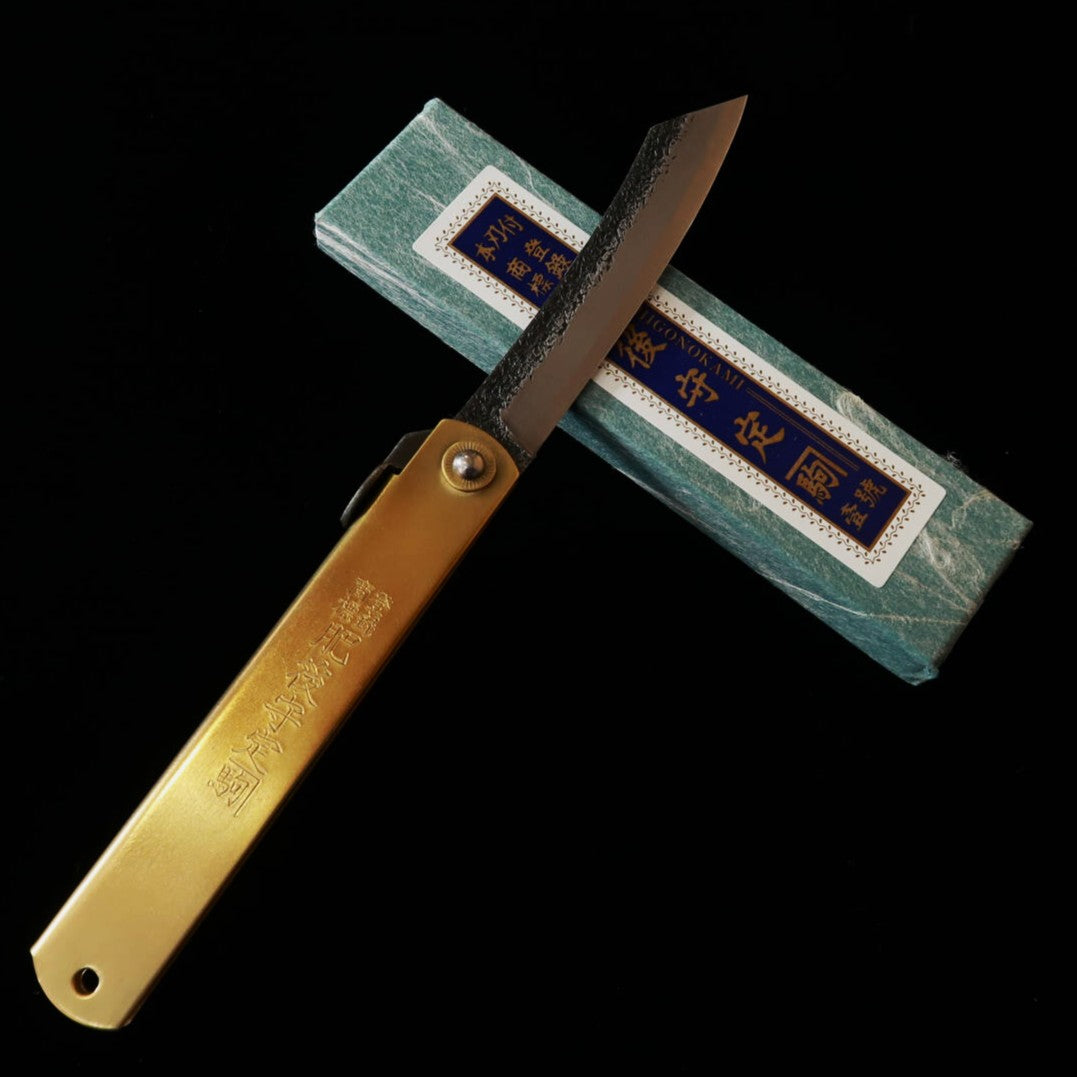 肥後守HIGONOKAMI 青紙割込 鎚目 真中 黒背 特大(120mm)
