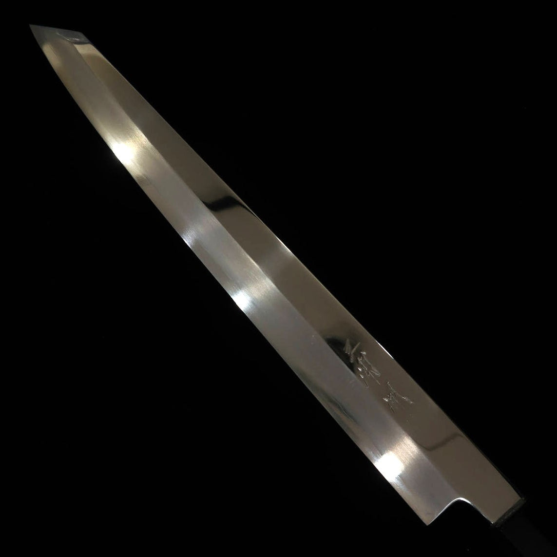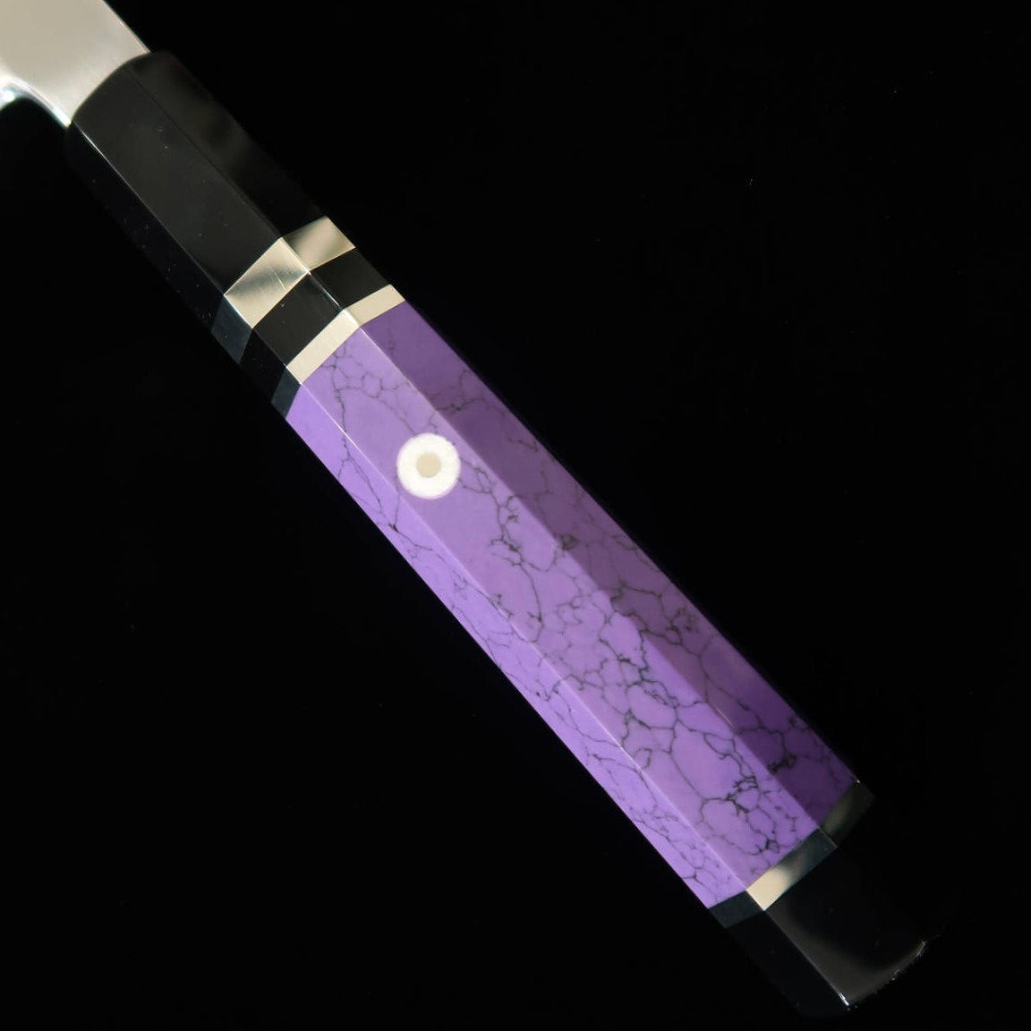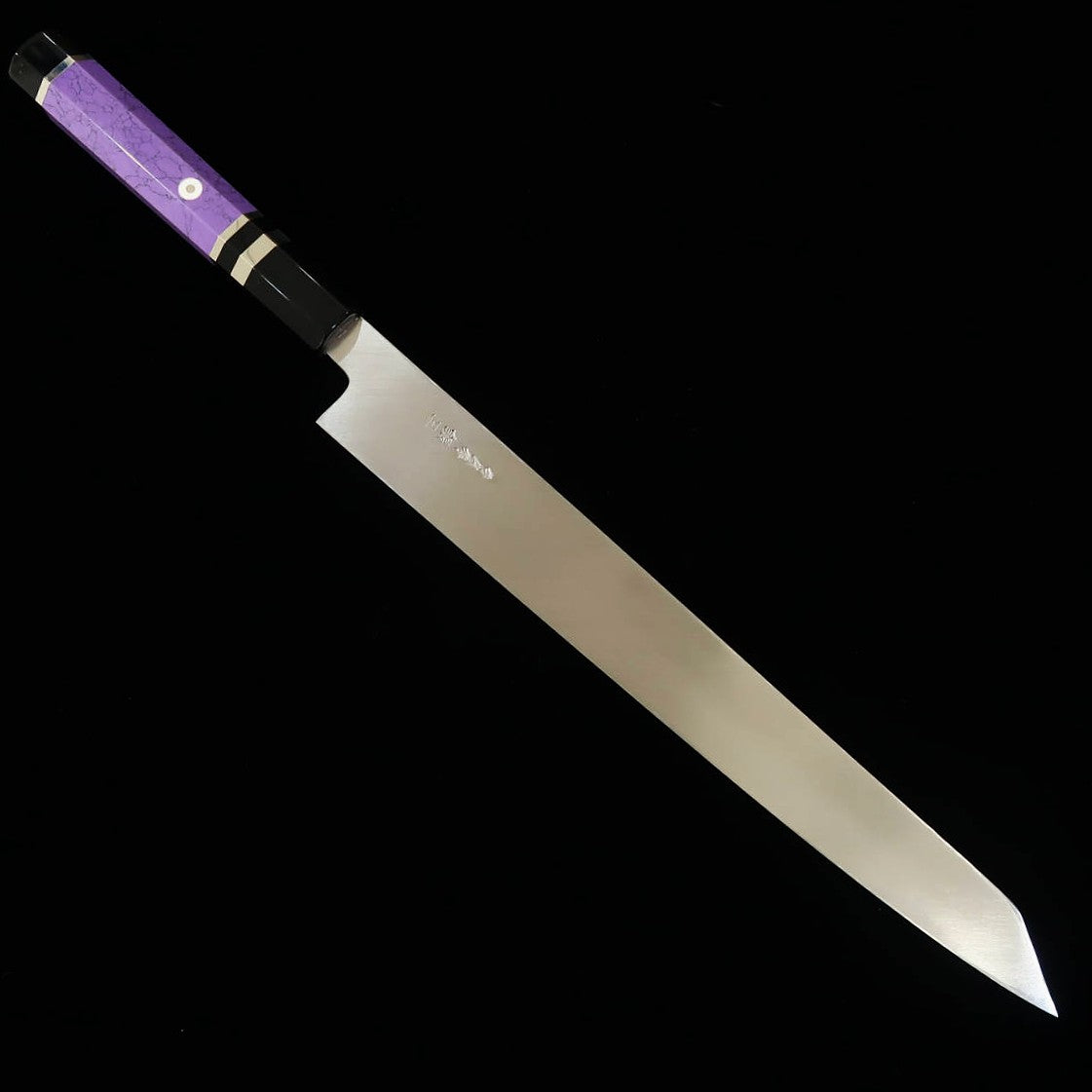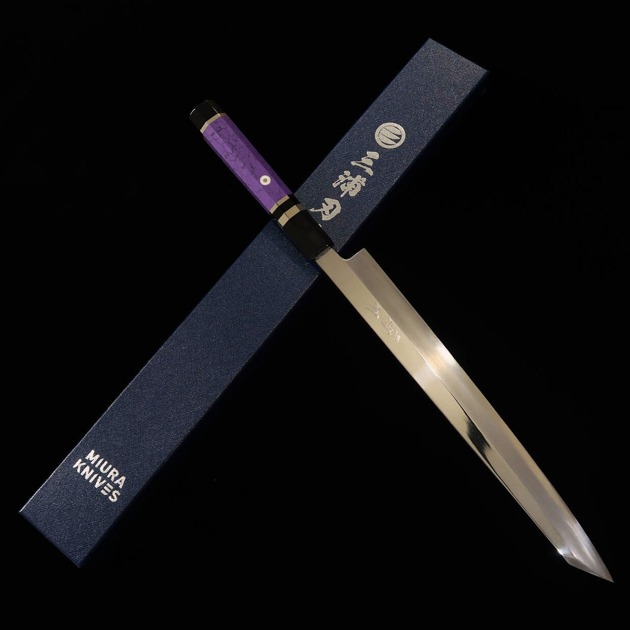 Kiritsuke Yanagiba para Canhotos MIURA Obidama Inox Ginsan Acabamento Espelhado Cabo Customizado Roxo (270/300mm)