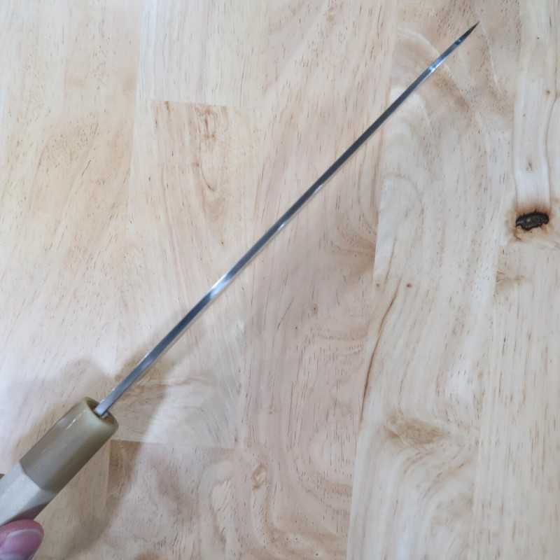 A lâmina foi feita pelo Sr. Satoshi Nakagawa, um fabricante de Facas em Sakai, Osaka, que é especialista em usar materiais que vão do aço branco e azul ao aço inoxidável.