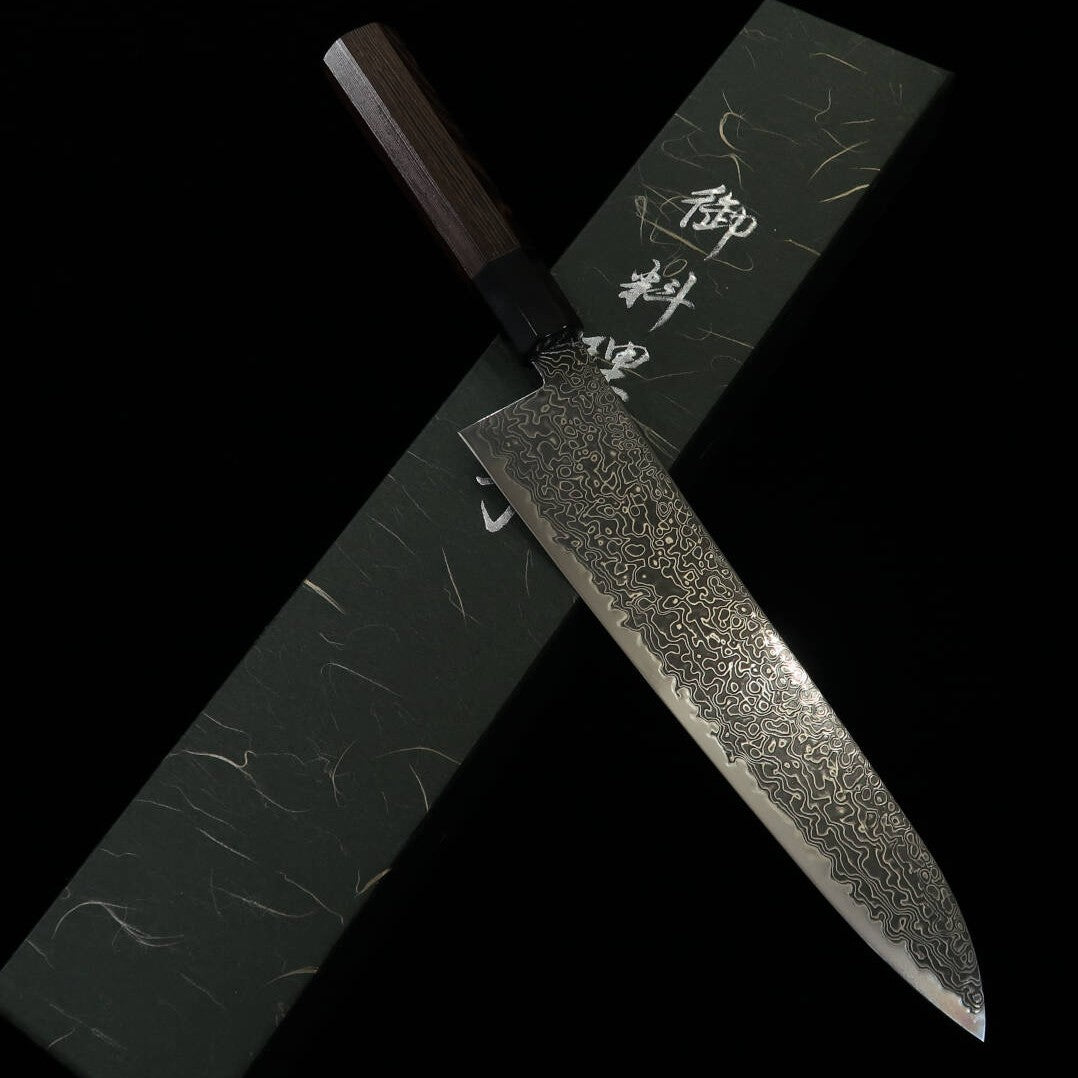 Miura MIURA Gyuto Ryuhyo SG2 Damasco escurecido, cabo octogonal de ébano e búfalo preto (240mm)