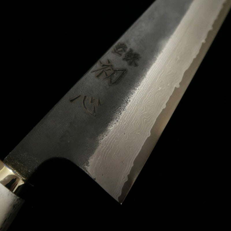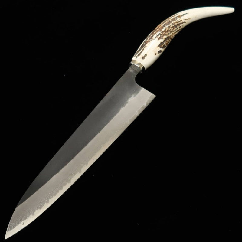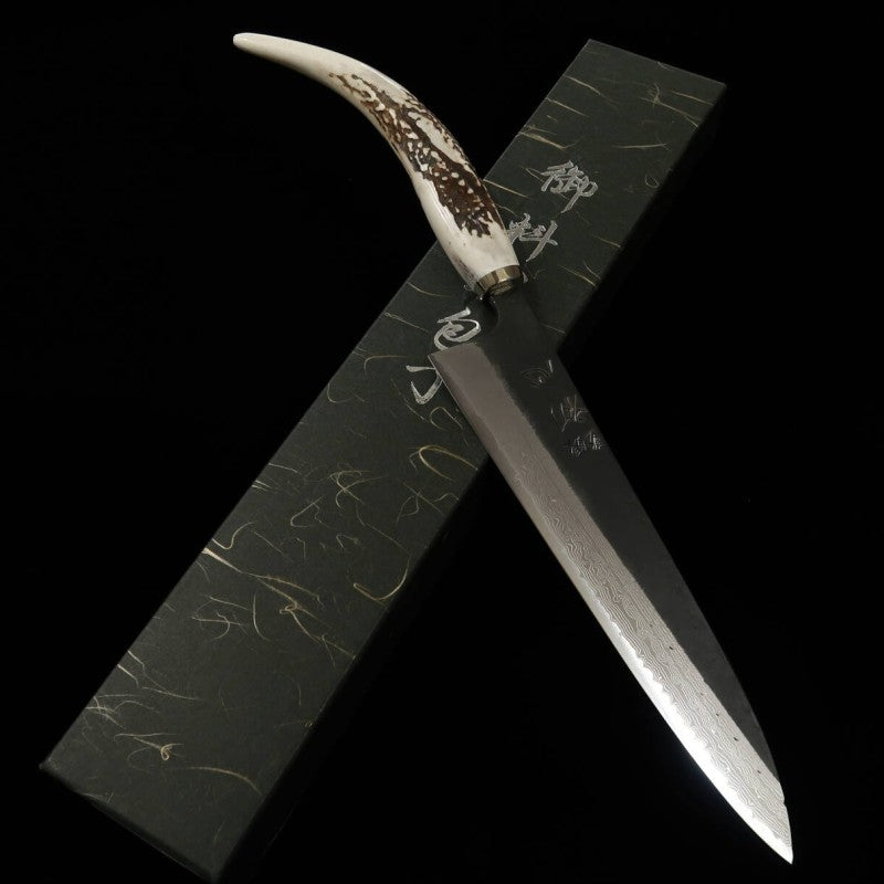 Gyuto HATSUKOKORO Shinkiro Aogami Super Damascus Black Cabo em chifre de cervo (240mm)